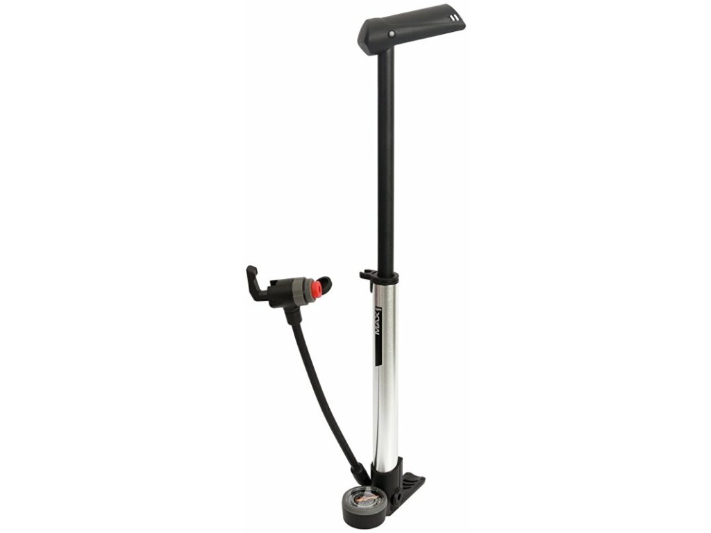 Cestovní malá nožní hustilka MAX1 Touring Evo s duální hlavou a manometrem, kterou vždy nahustíte své jízdní kolo na požadovaný tlak.- hliníkové tělo